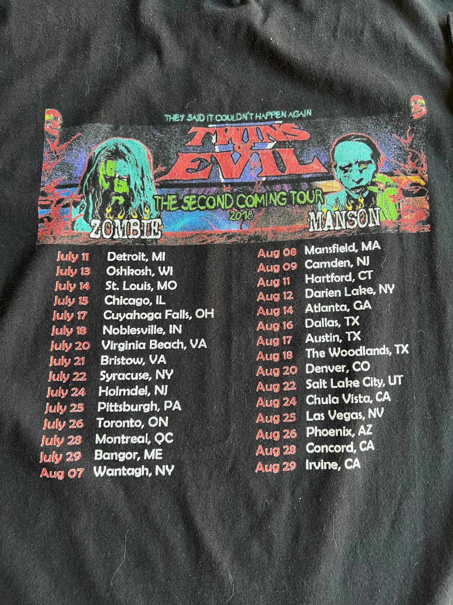 They Said It Couldn’t Happen Again Twins of Evil The Second Coming Tour 2017 Zombie and Manson tee size XXL! (Quantity 2 available)